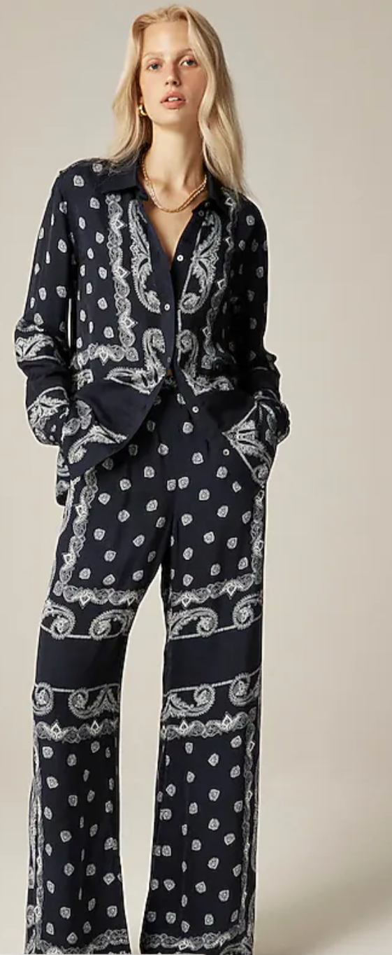 Bandanas have been around forever but seem to be everywhere right now. Initially an Indian export (where it got its paisley pattern) the bandana solidified its American roots with Martha Washington’s commission of a printed scarf of her husband riding a horse—and has since adorned everyone from Rosie the Riveter to Tupac Shakur. They often either help to make some sort of statement or fulfill a need and have been used for everything from wiping noses and showing union solidarity to concealing a bank robber’s identity, showing gang affiliation or to simply tie up one’s hair. Today, classic bandana print can be found on more than just scarves and deserve to officially add runway ready to its resume.
