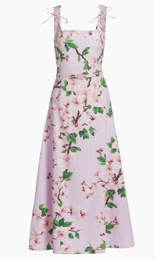 OSCAR DE LA RENTA Cherry Blossom Cotton Poplin Dress