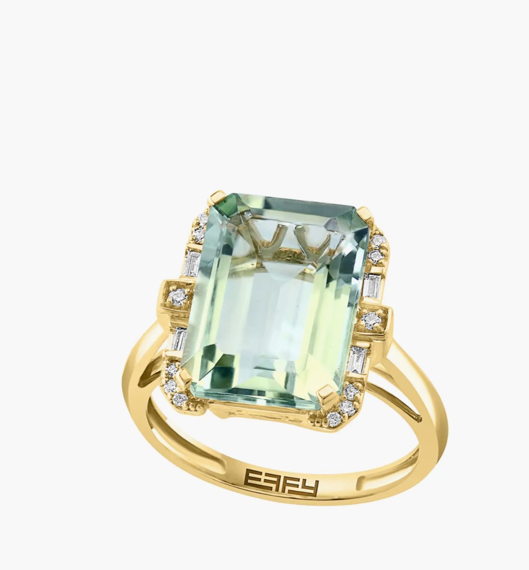 EFFY 14k Yellow Gold and Green Quartz and Diamond ring